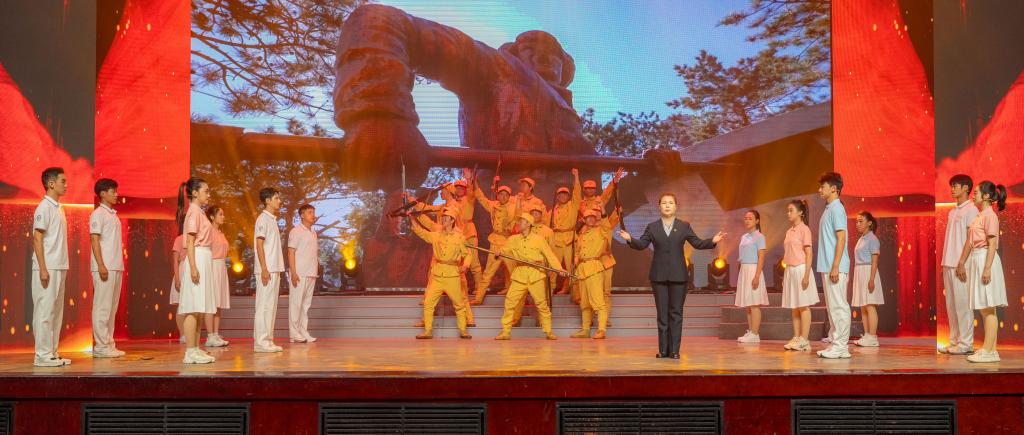 《砺器·铸丰碑》以辽沈战役为故事主线,将“三个一”的故事和“三种精神”有机融入其中,通过《3005次列车》《浴血配水池》《人民的苹果》《梁士英》四幕,生动讲述了辽宁工业大学和英雄城市锦州血脉相连的故事。近年来,学校充分发挥红色资源育人功能,以打造原创文化精品为目标,持续推进《砺器·铸丰碑》传承发展,不断丰富故事场景、情节、角色等元素,推动思政剧内容创新,通过传、帮、带作用完成演职人员更替,推动思政剧人员更新,融入信息技术元素营造立体化舞台,推动思政剧效果出新。