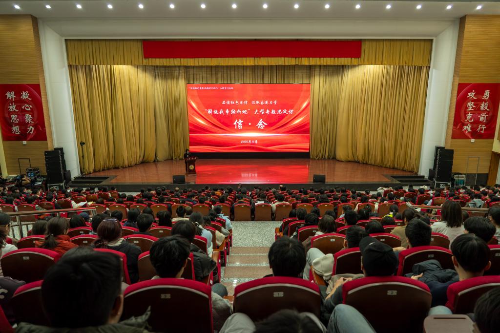 11月11日,由辽沈战役纪念馆推出的“解放战争转折地”大型专题思政课《信・念》首演在我校图书馆报告厅举行。校党委副书记、校长张启俭,党委副书记刘艳军,辽沈战役纪念馆副馆长刘芳出席活动。学校相关部门负责人、思政课教师、全体辅导员,青马班学员和本科生团干部代表500余人参加活动。活动由校团委书记李苓主持。