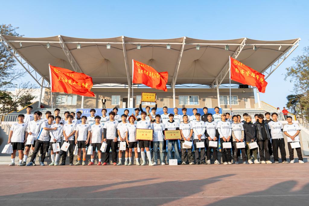 经过20天11场比赛的激烈对决,文化传媒与艺术设计学院通过点球大战战胜土木建筑工程学院,捧起了冠军奖杯,经济管理学院荣获季军。“最佳射手”被经管学院买吾兰·马买江收入囊中。